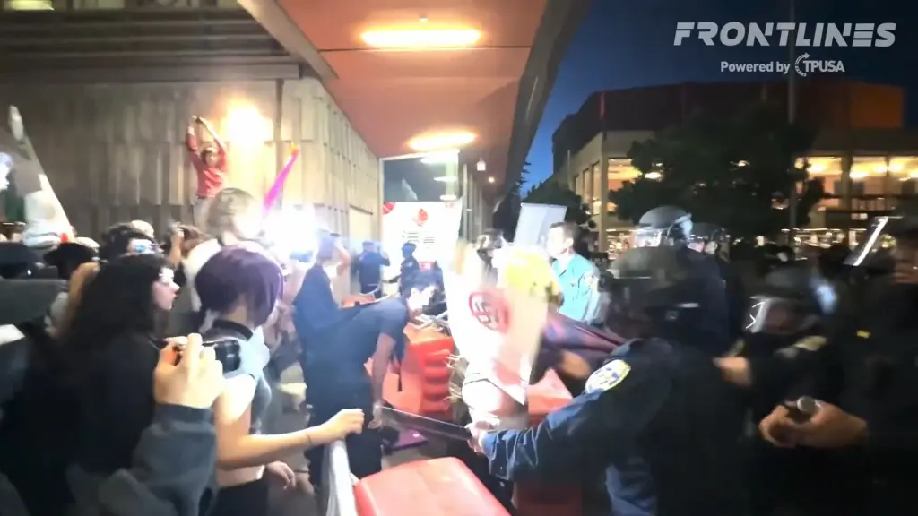 La Universidad de California, Berkeley, fue escenario de violentos disturbios la noche del lunes cuando un grupo identificado como Antifa irrumpió en un evento organizado por Turning Point USA (TPUSA), el grupo conservador fundado por el fallecido Charlie Kirk. Según los organizadores, «matones de Antifa» atravesaron las barricadas policiales, chocando con agentes y asistentes, en medio de una protesta que dejó a varias personas con heridas visibles y rostros ensangrentados.