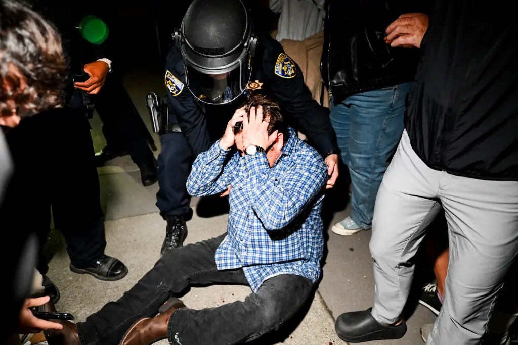Videos difundidos en redes sociales muestran a manifestantes, algunos con el distintivo pañuelo palestino (keffiyeh), intentando forzar el acceso al recinto mientras la policía, equipada con antidisturbios, intentaba contenerlos. En una de las imágenes más impactantes, se observa a un hombre con una camiseta roja que decía «Freedom» (Libertad) con sangre brotando de su rostro, siendo separado por agentes durante un forcejeo. Al menos dos personas habían sido arrestadas antes incluso de que comenzara el acto, uno de ellos por agresión.