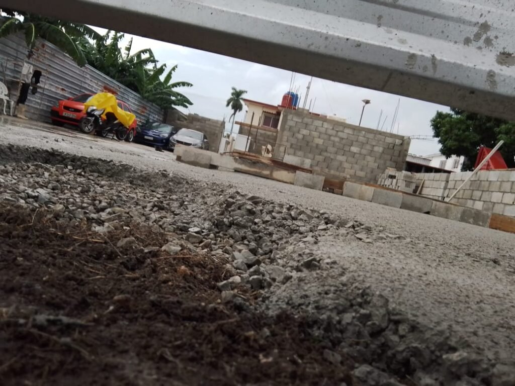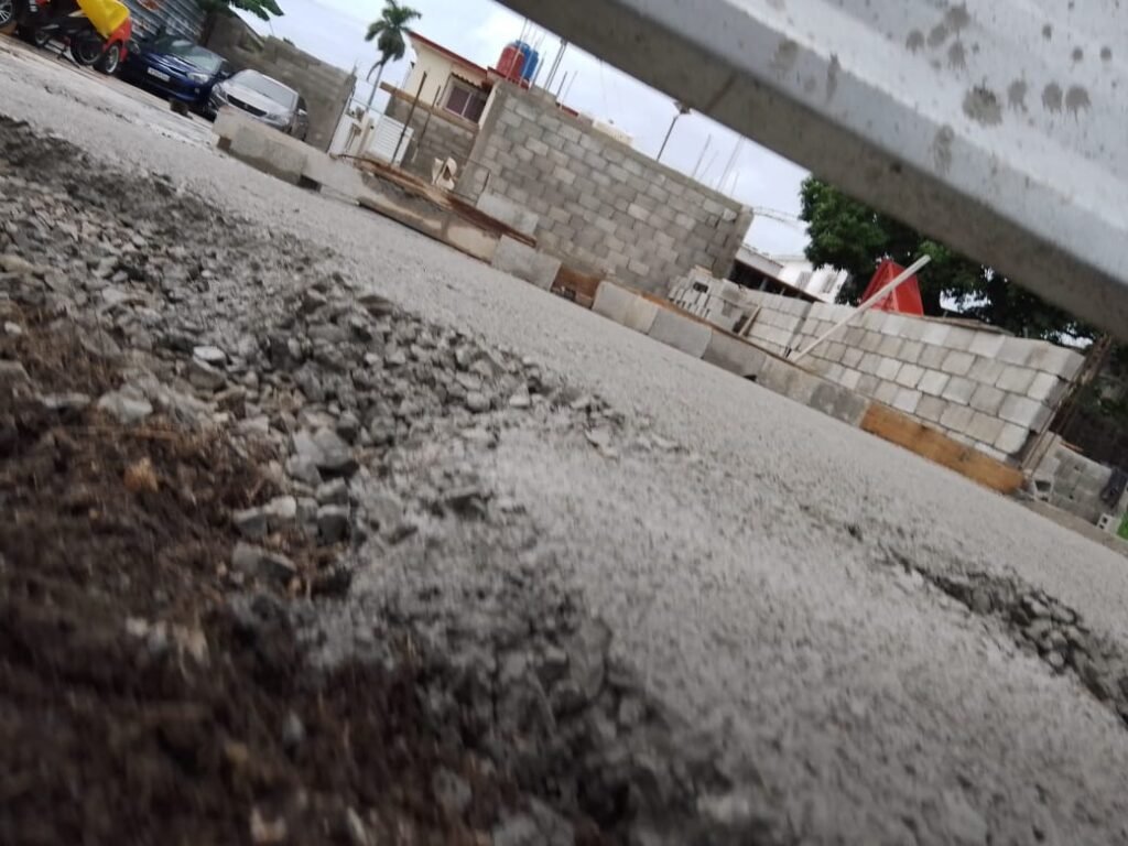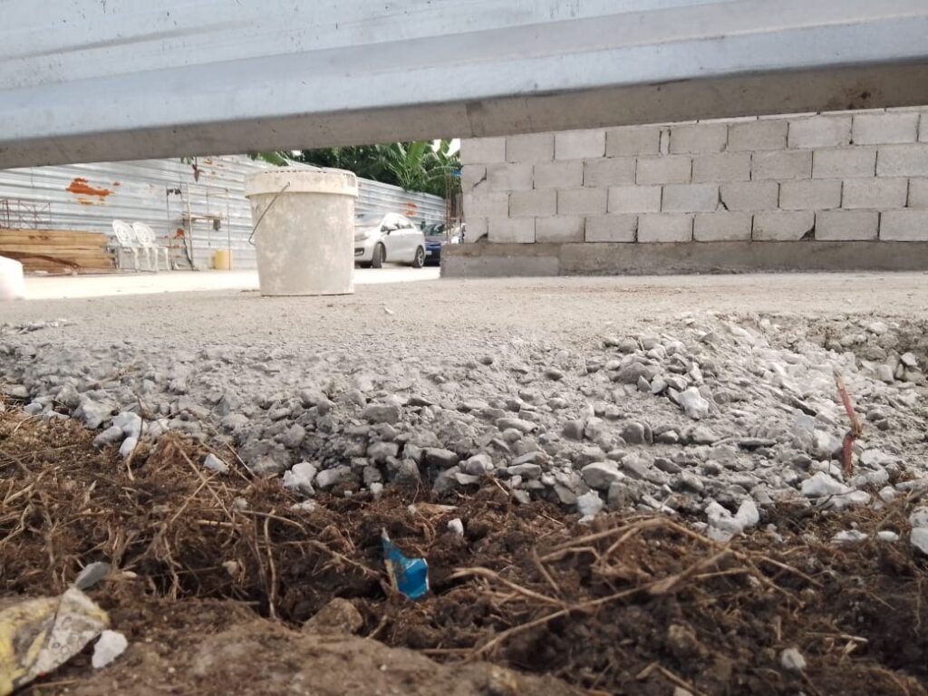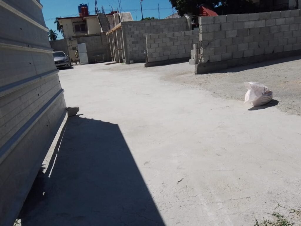 - Resultado: El terreno fue limpiado, nivelado y llenado completamente con una losa de cemento (se muestran imágenes de la obra en proceso y finalizada).