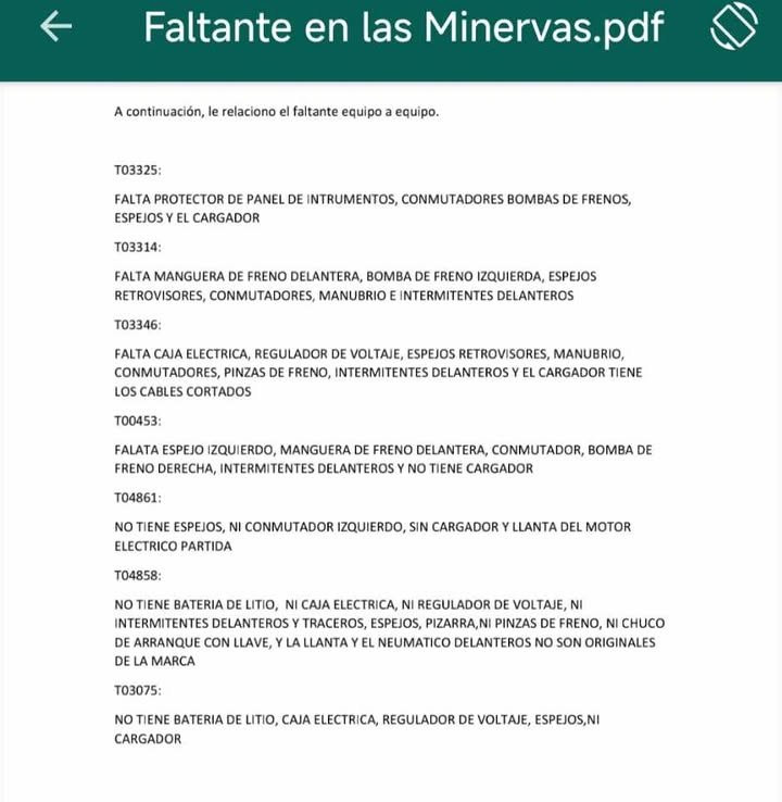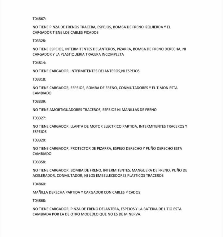 La denuncia también involucra al jefe de taller y a trabajadores del área técnica, quienes «son responsables del local donde se encuentran paralizadas las motos y están conscientes del faltante». Es decir, no solo no han impedido el robo, sino que tienen conocimiento de lo ocurrido y, hasta ahora, no han actuado ni denunciado.