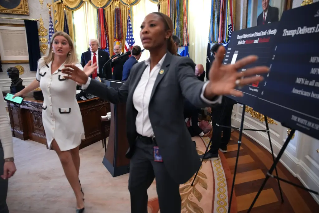 «¿Estás bien? ¿Gordon, estás bien?», preguntó David Ricks, CEO de Eli Lilly, cuando el hombre comenzó a desplomarse. Funcionarios gritaron «¡Prensa fuera!» mientras Trump se levantaba de su asiento en el Resolute Desk y el Dr. Oz corría para asistir al afectado.