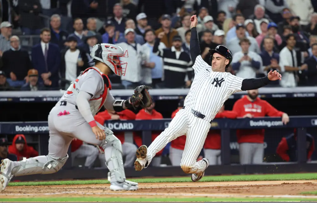 Una entrada que le solía pasar a los Yankees ahora les ocurría a ellos, forzando la situación poniendo la pelota en juego y desafiando a los Medias Rojas a hacer jugadas, cosa que no hicieron.