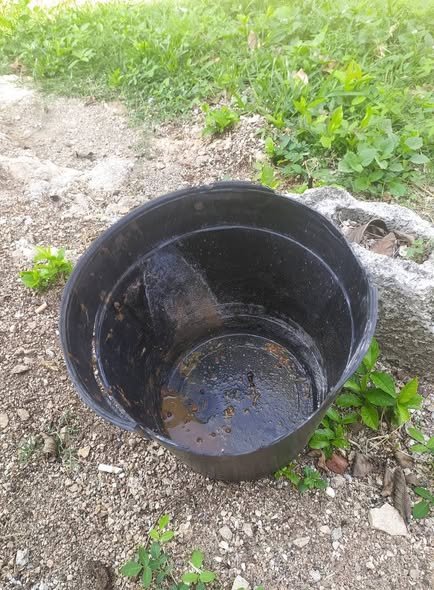 Las condiciones de vida: un cubo para hacer sus necesidades