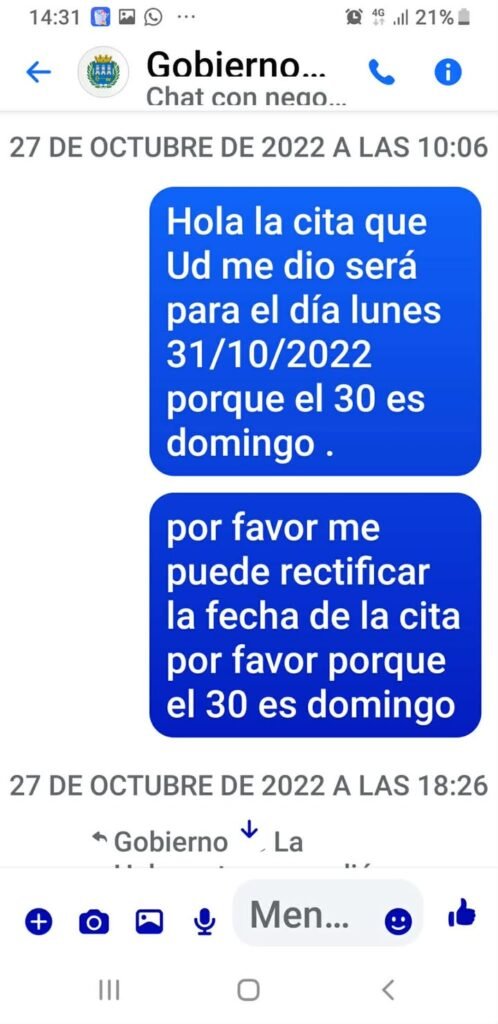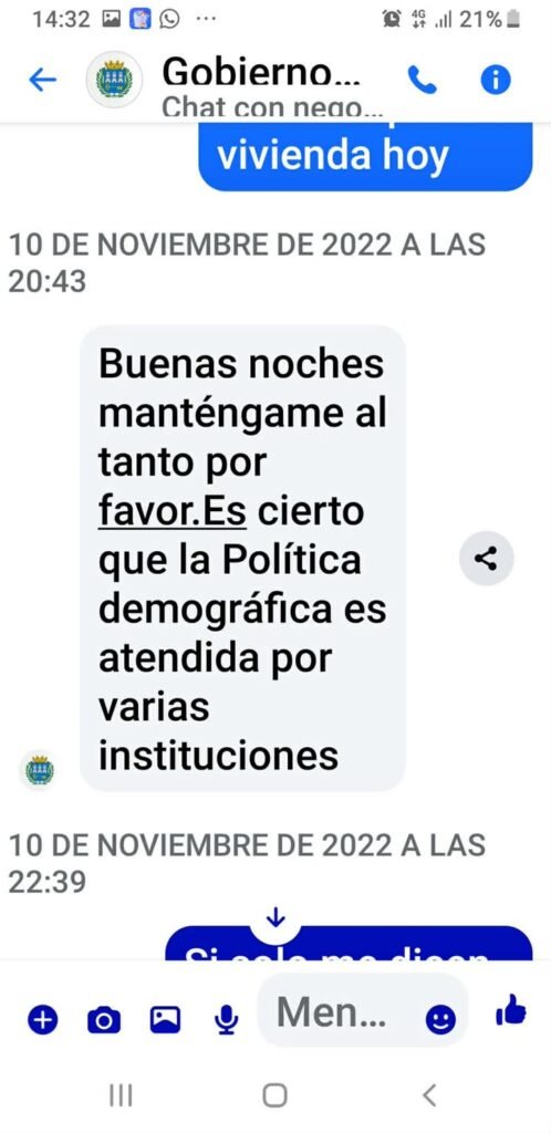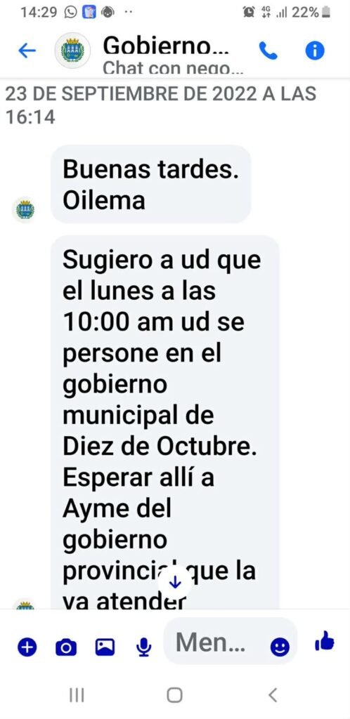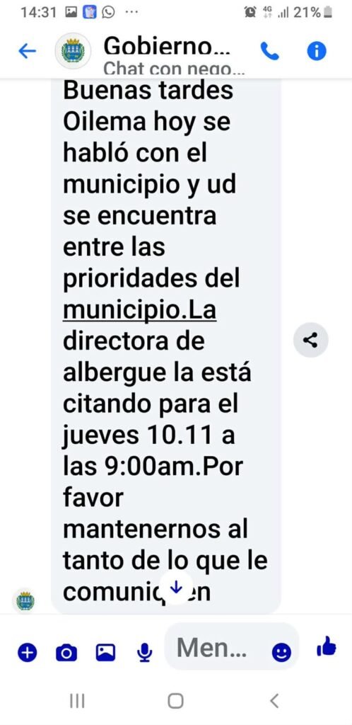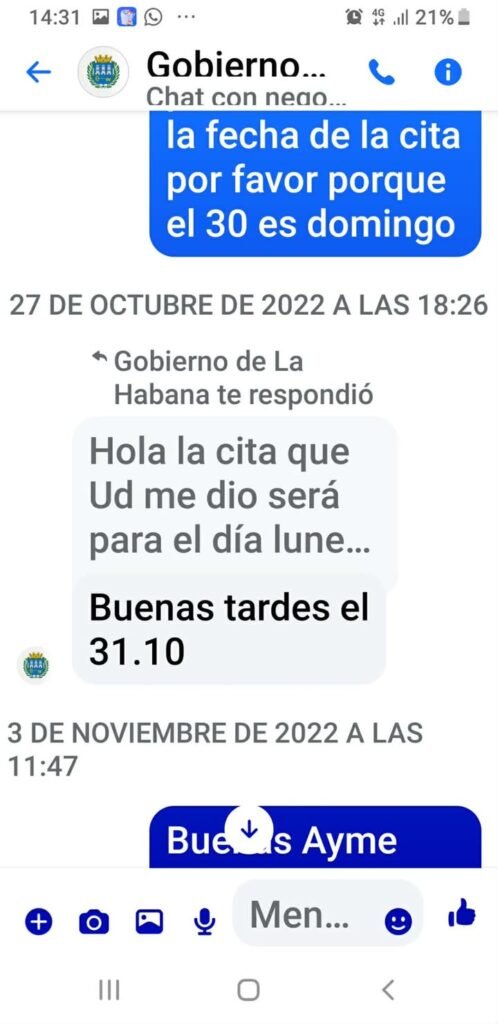 En 2021, aproximadamente el 6 de abril, ocurrió algo que parecía una luz de esperanza: una visita del gobierno de La Habana al municipio determinó que la denunciante era un «caso social excepcional, excepcional», y que por lo tanto clasificaba más rápido para el programa demográfico de viviendas.