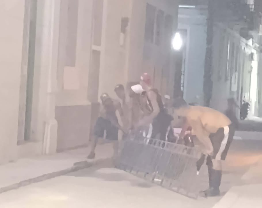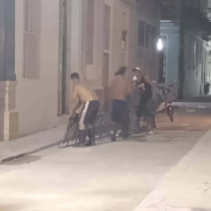 Un vecino logró fotografiar el momento en que al menos seis personas desmontaban y trasladaban una cerca de un parque en una calle poco transitada del Vedado. Las imágenes muestran a un hombre en una moto eléctrica que habría participado en el operativo, y luego a todo el grupo transportando la estructura en plena noche. El hecho refleja la creciente ola de sustracción de bienes públicos en medio de la crisis económica.