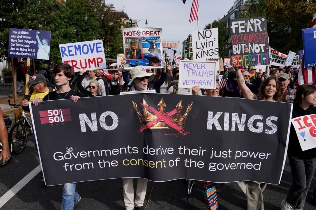 Más de siete millones de estadounidenses se manifestaron el sábado en más de 2,700 ciudades bajo el lema «Sin Reyes» (No Kings), una movilización masiva en rechazo al gobierno del presidente Donald Trump, al que acusan de actuar con una agenda autoritaria y de socavar las instituciones demócratas del país. En Washington D.C., Peggy Cole, una funcionaria jubilada de Michigan, viajó diez horas para celebrar su cumpleaños número 70 entre pancartas y consignas. «Trump está desmantelando nuestra democracia pieza por pieza», declaró la manifestante a CNN.