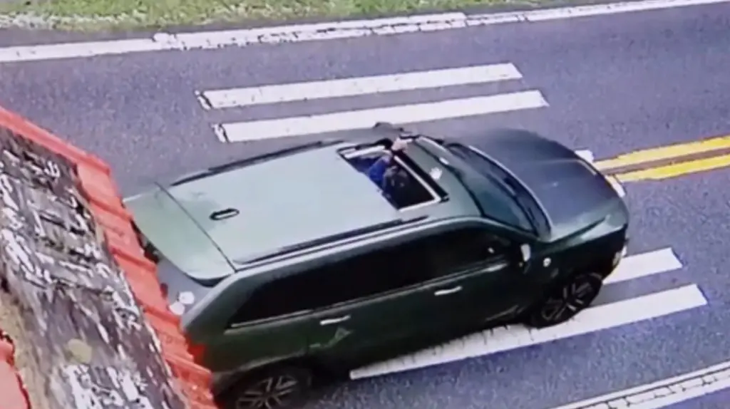 El acusado, de baja estatura, fue captado en video forcejeando para alcanzar el letrero antes de abrir fuego desde su vehículo en Carolina del Norte