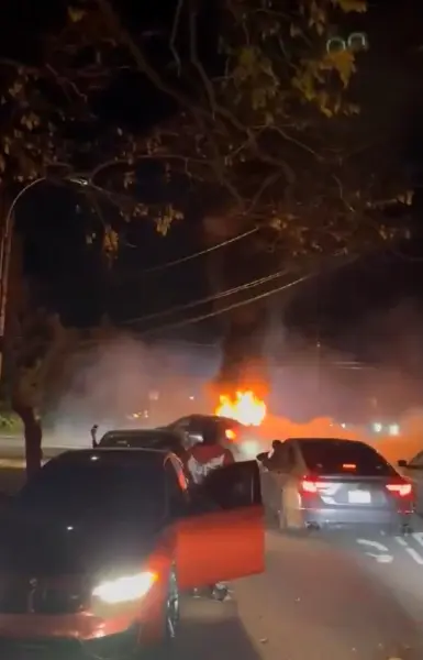 «Era un caos total… Apenas hice eso, todos comenzaron a irse. Luego dos individuos se acercaron al auto. De alguna manera lanzaron algún tipo de fuego artificial o algo y prendieron fuego al auto. Luego el caos comenzó de nuevo».